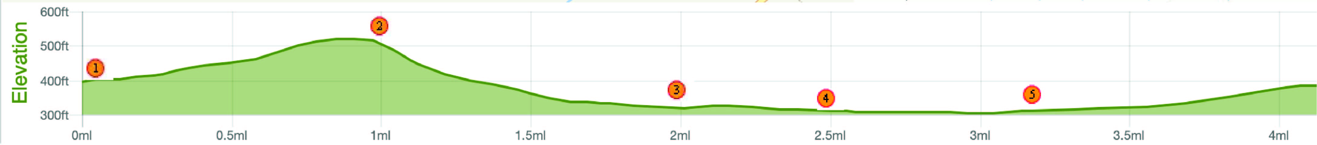 old hedge on the right over a series of stiles to the stone bridge at Town